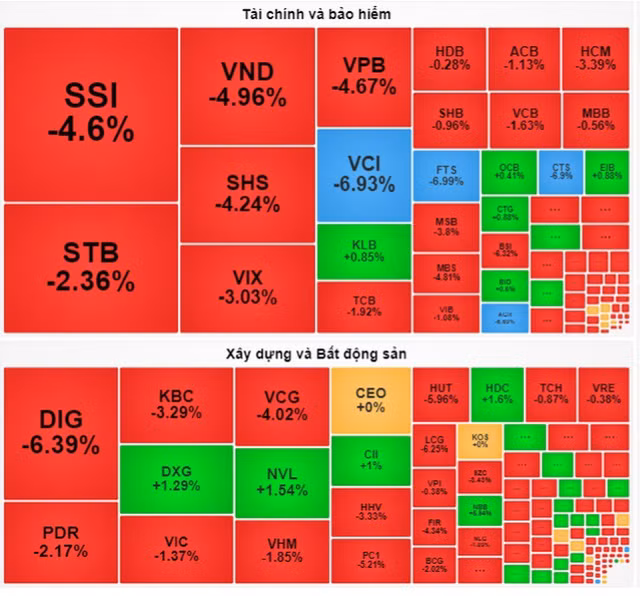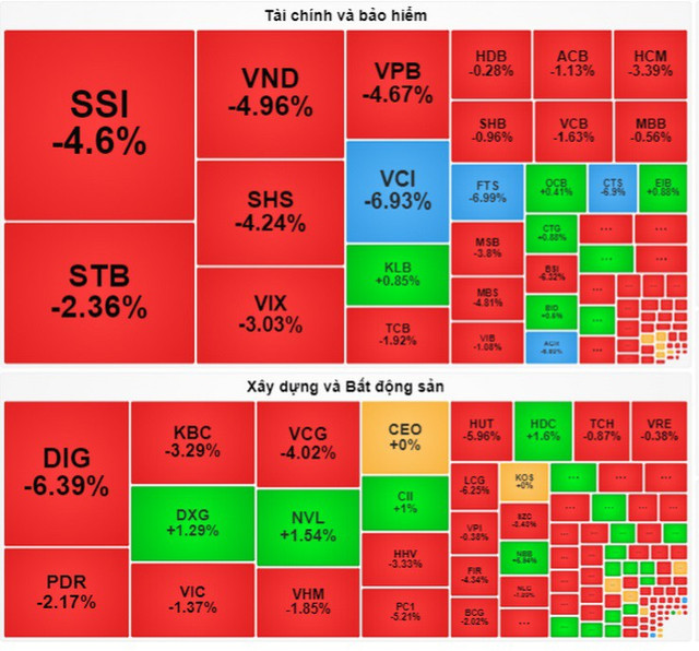 Nhiều mã cổ phiếu giảm mạnh trong ngày thị trường chứng khoán Việt Nam đã có chuỗi 4 phiên giảm mạnh liên tiếp - Ảnh chụp màn hình