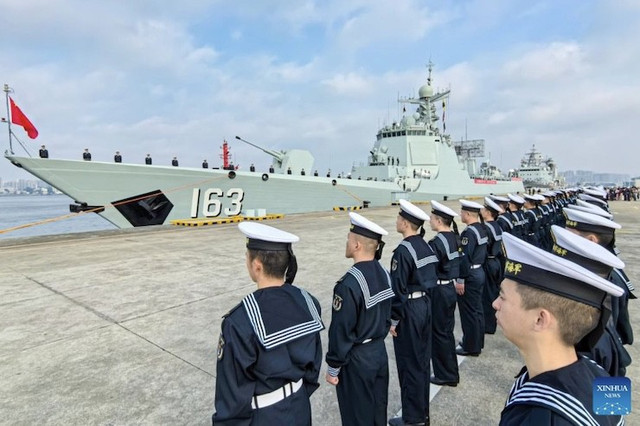 Chiến hạm Trung Quốc hôm 21/2 khởi hành từ thành phố Trạm Giang, tỉnh Quảng Đông tới vịnh Aden gần Biển Đỏ. Ảnh: Tân Hoa Xã.