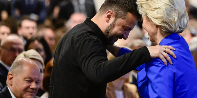 Chủ tịch Ủy ban châu Âu Ursula von der Leyen và Tổng thống Ukraine Zelensky trong một sự kiện ngày 11/6/2024. Ảnh: AFP