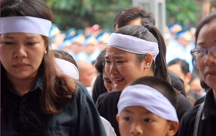 Người thân Thượng tá Khuất Mạnh Trí khóc nghẹn ngào trước lĩnh cữu của anh.