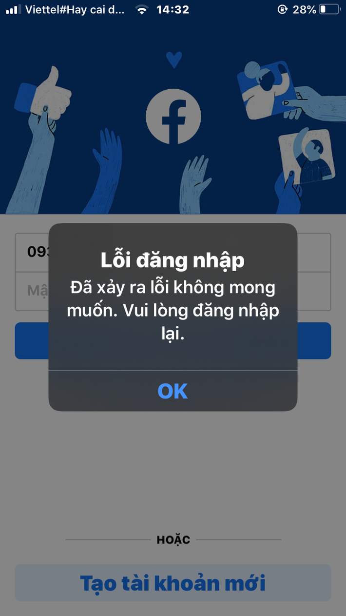 Tối ngày 4/10, hàng loạt tài khoản Facebook tại Việt Nam đang bị lỗi trên diện rộng. Theo báo cáo từ nhiều người dùng, website Facebook.com và ứng dụng Facebook đều không thể load được tin tức.