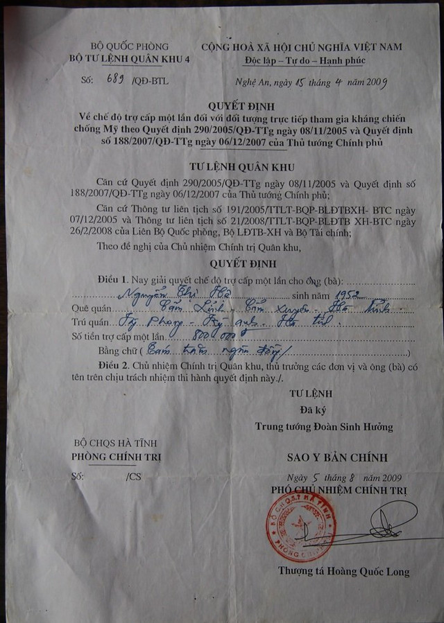 Trong căn nhà nhỏ nằm lọt thỏm giữa mảnh vườn đầy cỏ gianh, ông Nguyễn Văn Trung (chồng bà Hệ) ngồi lặng lẽ xếp những tấm huy chương vàng chói nằm gọn ghẽ trong một chiếc hộp nhựa nhỏ bằng bàn tay. Ông nói, thanh xuân của ông gắn liền với chiến tranh bom đạn, lúc bị thương giải ngũ ông trở về bầu bạn với bà Hệ đến nay cũng đã mấy chục năm.