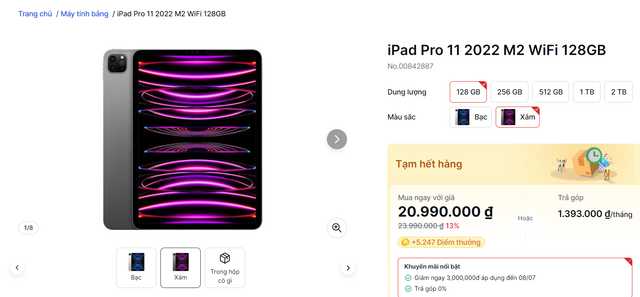 iPad Pro 11 2022 M2 WiFi 128GB đang được giảm giá mạnh.