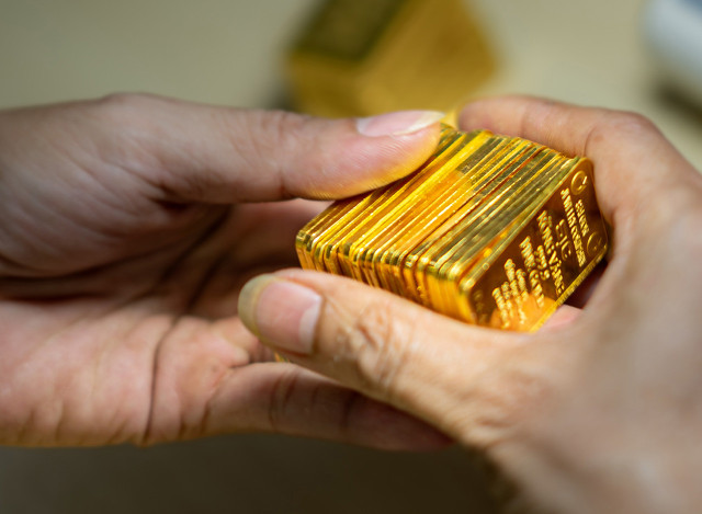 Ở thị trường trong nước, mở cửa phiên giao dịch sáng nay, Công ty Vàng bạc đá quý Sài Gòn niêm yết giá vàng SJC mua vào bán ra ở mức 66,35 - 66,97 triệu đồng/lượng, tăng 50.000 đồng/lượng chiều mua vào và giảm 50.000 đồng/lượng chiều bán ra so với chốt phiên hôm qua.
