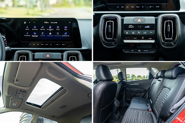 Các trang bị tiện nghi hiện đại khác trên KIA Sonet 2024 có thể kể đến: sạc không dây Qi, cửa sổ trời chỉnh điện với tính năng chống kẹp an toàn. Hệ thống âm thanh 6 loa; Điều hòa tự động; Đề nổ dạng nút bấm; Khởi động từ xa;...