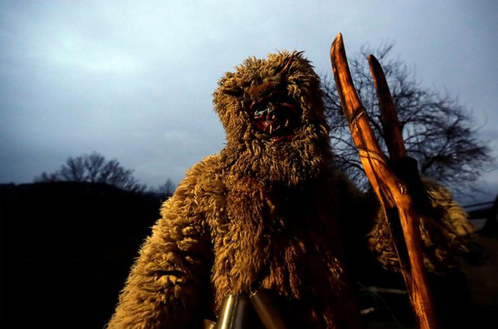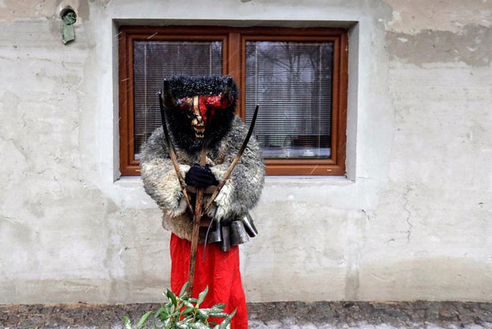 Những "con quỷ" đeo mặt nạ sẽ diễu hành qua làng, cổ đeo những chiếc vòng to, tay đeo lắc chuông, tới gõ cửa từng nhà đến tìm những đứa trẻ hư. (Nguồn ảnh: Reuters)