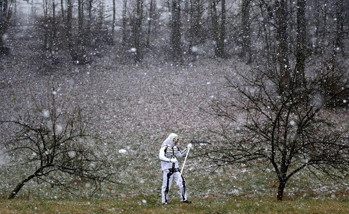 Một "con quỷ" đi dưới trời mưa tuyết.