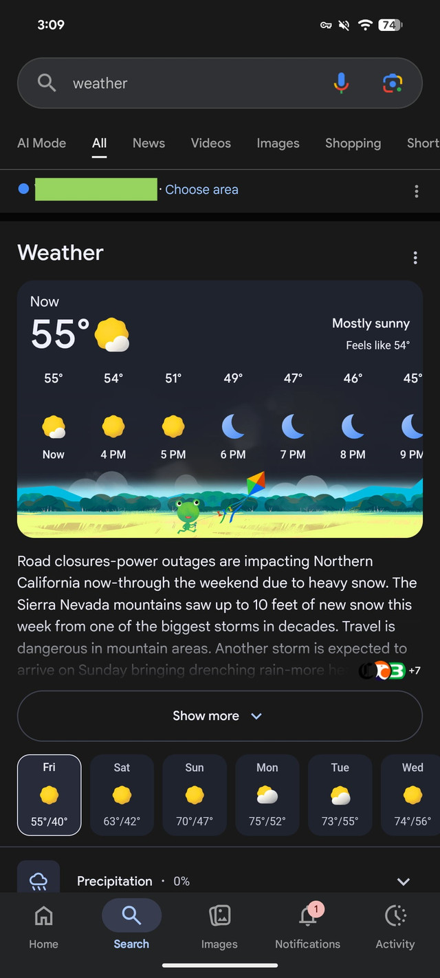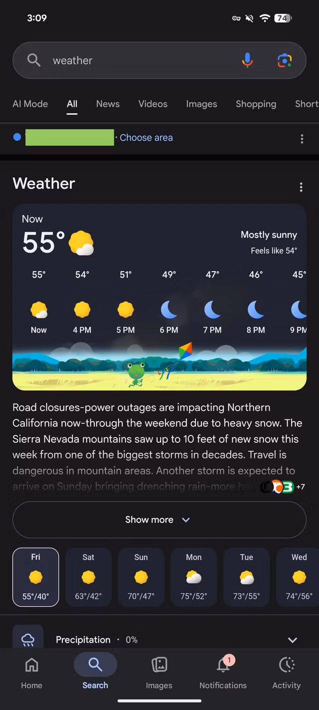 Những người nhận được thông báo “Trang thời tiết đã được chuyển” sẽ không còn nút “Xem tất cả chi tiết” ở cuối trang để mở trải nghiệm Thời tiết toàn màn hình. Khi cuộn xuống trong giao diện mới này, người dùng sẽ thấy các kết quả web.