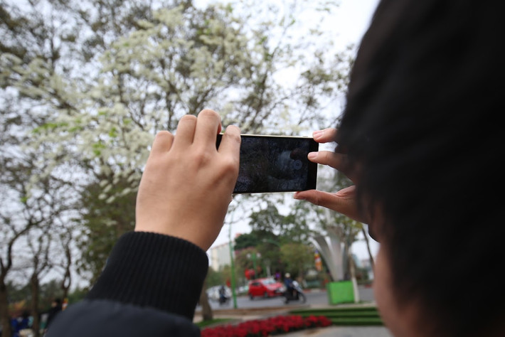 Rất nhiều những tay máy ở Hà Nội đã thử sức để kiếm cho mình những khoảnh khắc cực đẹp của hoa sưa.