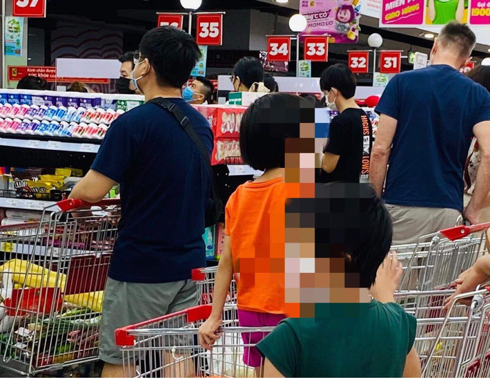 Ghi nhận tại Big C Thăng Long, đặc biệt là các quầy thanh toán rất đông. Khách hàng cũng không để ý mấy đến việc giữ khoảng cách an toàn. Dường như nhiều người đã bắt đầu có tâm lý chủ quan?