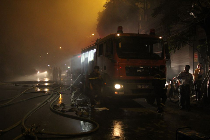 Ngay khi nhận tin báo vụ cháy 5 ngôi nhà liền kề ở Hải Phòng, lực lượng chữa cháy chuyên nghiệp đã nhanh chóng điều động 11 xe chữa cháy của các lực lượng Phòng 3, Phòng 2, Phòng hướng dẫn chữa cháy cùng 200 cán bộ chiến sĩ nhanh chóng tiếp cận hiện trường, triển khai phun nước khống chế đám cháy, ngăn chặn cháy lan.
