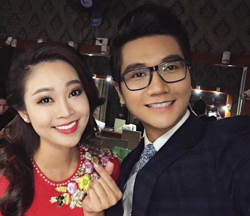 MC Thùy Linh chụp hình bên cạnh MC Danh Tùng, MC Mỹ Vân và Lương Nguyệt Anh.