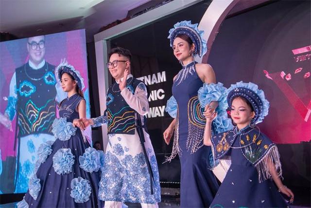 Bên cạnh đó, Hoa khôi Hà Nội 2022 Vũ Thu Trà My là người mẫu mở màn của Vietnam Iconic Runway 2024. Quán quân International Fashion Runway 2024 diện bộ trang phục dân tộc Tày cách tân của NTK Phạm Gia Hưng, trong BST mang tên Hương sắc Cao Bằng.