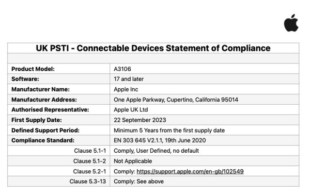 Trước khi đi sâu vào thông tin, chúng ta hãy biết rằng việc nộp hồ sơ quy định chủ yếu liên quan đến nội dung là các bản cập nhật bảo mật, vì vậy Aplpe cũng hứa sẽ cung cấp cập nhật bảo mật cho dòng iPhone 15 trong ít nhất 5 năm, kể từ tháng 9/2023.