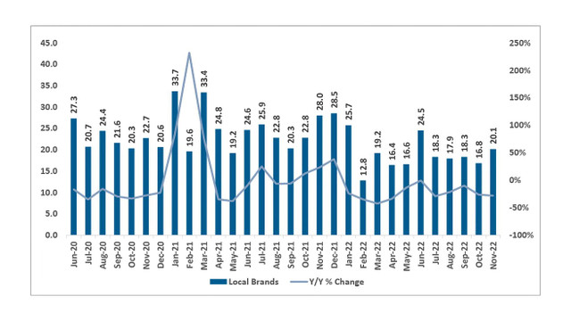 J.P. Morgan dự kiến, lượng hàng bán ra trong tháng 12/2022 so với cùng kỳ năm 2021 sẽ tiếp tục giảm do nguồn cung vẫn bị hạn chế trong ít nhất nửa đầu tháng.