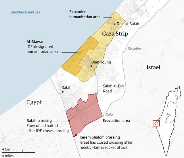 Theo báo Anh Guardian, Israel phát động cuộc tiến công bằng cách kiểm soát cửa khẩu quan trọng kết nối Rafah và miền nam Dải Gaza với Ai Cập, cắt đứt các tuyến đường vận chuyển hàng cứu trợ tới Rafah.