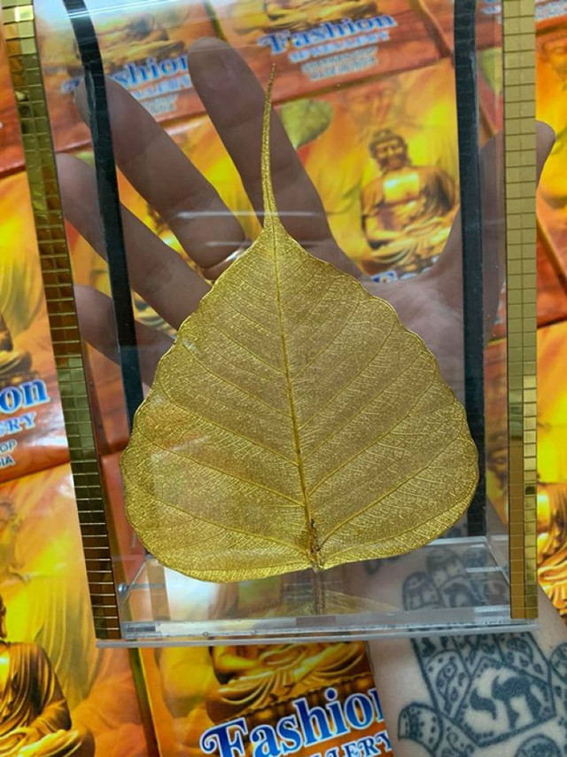 Nhiều người còn mua lá bồ đề mạ vàng với mong muốn cầu may mắn, tài lộc trong năm mới.