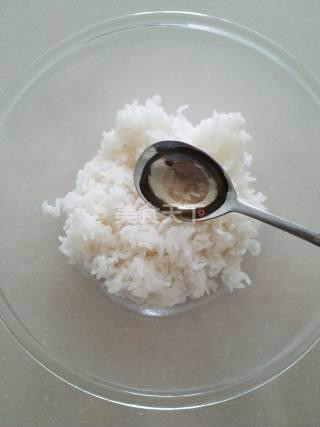 Trộn 2 bát cơm với 1 thìa dấm sushi.