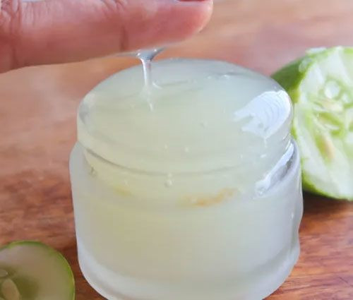 Để tự làm gel dưa chuột này, hãy lấy một cái bát hoặc cốc nhỏ và đổ 1/3 cốc gel lô hội, 4 đến 5 thìa nước ép dưa chuột tươi, 4 viên dầu vitamin E. Cho một hỗn hợp tốt và giữ nó trong chai bơm. Có thể bảo quản trong tủ lạnh tối đa 1 tuần. Lưu ý rằng bạn không thể sử dụng gel lô hội tươi vì nó không thể kết hợp với các thành phần khác. Đảm bảo sử dụng gel lô hội thương mại có nhãn hiệu tốt. Để áp dụng điều này, hãy lấy một lượng nhỏ gel và massage lên da mặt và cổ. Có thể thoa hỗn hợp này trước khi đi ngủ và rửa sạch vào buổi sáng. Bạn có thể cũng sử dụng nó như một loại kem dưỡng ẩm trong ngày.