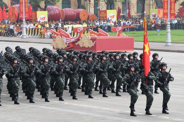 Khối quân nhân Campuchia tham gia diễu binh trên Quảng trường Ba Đình ngày 2/9. Ảnh: Trọng Tài