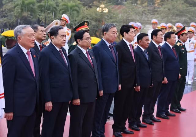 Sau khi vào Lăng viếng Chủ tịch Hồ Chí Minh và dâng hương tại Đài tưởng niệm các Anh hùng Liệt sĩ, Tổng Bí thư Tô Lâm cùng các đồng chí lãnh đạo Đảng, Nhà nước và đại biểu dự Đại hội đại biểu toàn quốc lần thứ XIV của Đảng Cộng sản Việt Nam di chuyển đến Trung tâm Hội nghị Quốc gia (Hà Nội) để tiến hành phiên họp trù bị.