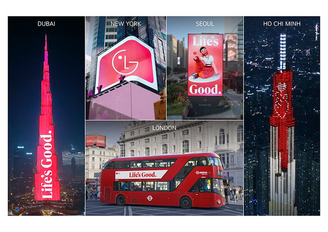 Để lan tỏa thông điệp và mở màn chiến dịch một cách ấn tượng, LG đã “chiếm lĩnh” các biểu tượng toàn cầu với hình ảnh mới nhất của mình. Từ ngày 22/8, một loạt những địa điểm nổi tiếng ở nhiều châu lục như tháp Burj Khalifa ở Dubai, tòa tháp chọc trời Landmark 81 tại Việt Nam, bảng quảng cáo số hóa tại Times Square, New York và Piccadilly Circus ở London, màn hình LED ngoài trời tại Óvalo Gutiérrez, Peru, tòa tháp KP tại Ấn Độ, hay những chiếc xe buýt hai tầng màu đỏ đặc trưng của London đều được phủ sóng bởi những gương mặt tươi cười được tạo ra bằng các chữ “L” và “G” tương tác, thể hiện nhiều cảm xúc phong phú.