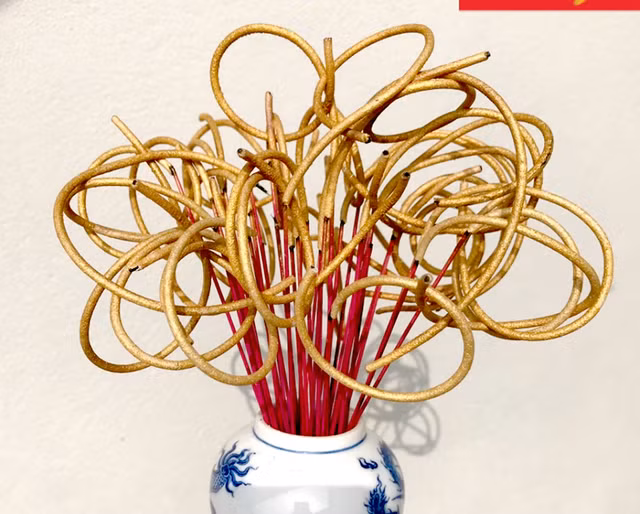 Nhang Thần Tài cháy xong sẽ đậu tàn, tạo thành hình đồng xu.