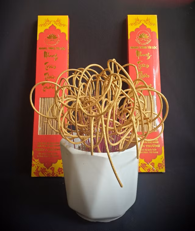 “Hai năm trước, mỗi năm nhà tôi bán hơn 500 thùng cho sỉ, còn lại bán lẻ vào 3 tháng dịp Tết. Mỗi thùng chứa 60 hộp và mỗi hộp chứa 100 cây nhang. Khách đặt mua sỉ hầu như đều đặt trước từ tháng 9, tháng 10 Âm lịch, nhà tôi sẽ sản xuất đủ số lượng, sau đó làm một số thùng để bán lẻ thôi”, anh nói.