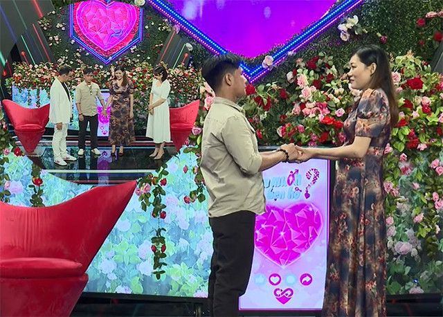 Cùng nắm tay trao cảm xúc, hai trái tim từng đổ vỡ đã bấm nút hẹn hò trong niềm vui của ông bà mối.