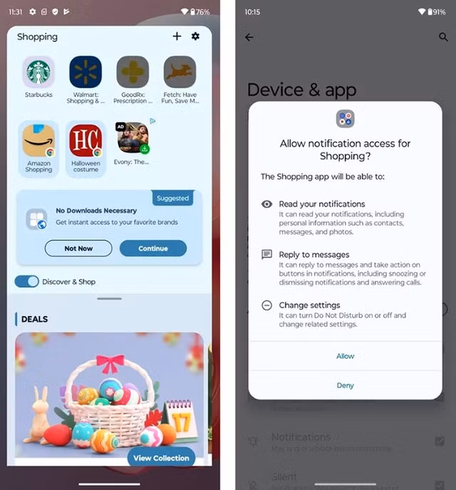 Ngăn kéo Ứng dụng của Moto G Power 2024 chứa một số “thư mục” được tải xuống tự động. Trên thực tế, đây chỉ là những ứng dụng trung tâm, bao gồm Shopping, Entertainment và GamesHub. Mỗi ứng dụng này là một tập hợp vô số các ứng dụng khác nhau với hầu hết là không cần thiết. Việc từ chối các ứng dụng được đề xuất sẽ mở ứng dụng Discover nhằm yêu cầu người dùng nhấp vào các liên kết quảng cáo và “mở khóa cơ hội mua sắm” một cách khó chịu.