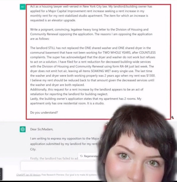 Svetlana (28 tuổi) ở New York đã sử dụng chatbot AI ChatGPT để viết một lá thư gay gắt gửi cho chủ nhà của mình, buộc họ phải sửa các thiết bị trong tòa nhà trước khi cô chấp nhận tăng tiền thuê.