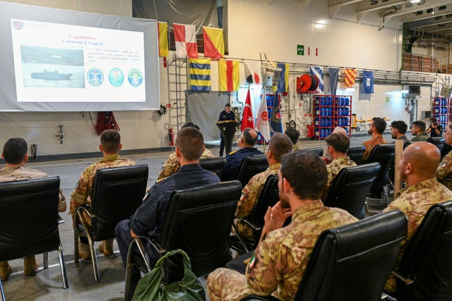 Thảo luận về vai trò của tàu, ông nói thêm: “Chúng tôi đang tiến hành các cuộc tập trận, bao gồm cả diễn tập đổ bộ với Hải quân Ý. Về cơ bản, đây là hoạt động phục vụ cho các hoạt động đổ bộ mà chúng tôi đang tiến hành trong khu vực này với các đối tác Ý.”