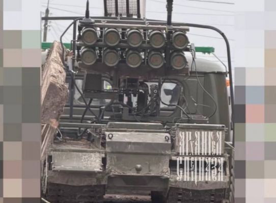 Bức ảnh cho thấy một robot bọc thép bánh xích Kurier, được trang bị 10 ống phóng súng phun lửa. Robot đang được vận chuyển trên thùng xe tải. "Đây là chiếc xe đang di chuyển ra tiền tuyến. Chúng tôi sẽ không nêu rõ hướng đi, vì vậy đây sẽ là một bất ngờ đối với lực lượng Ukraine, điều mà họ rõ ràng đã lường trước", kênh Telegram ‘Arkhangel Spetsnaz’ viết.