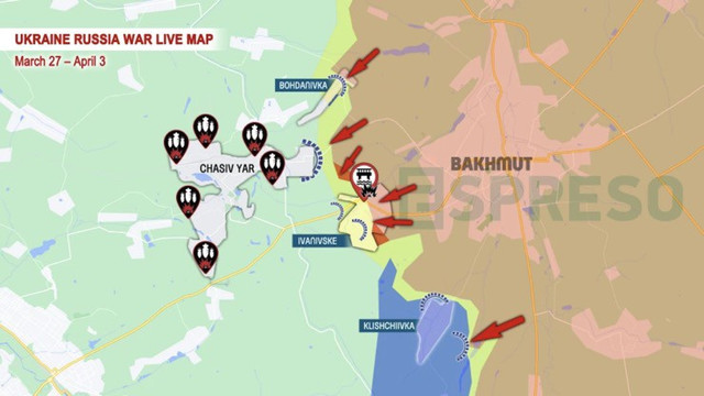 Theo Sputnik, các lực lượng Nga đã tiến vào vùng ngoại ô thành phố Chasov Yar (hay còn gọi là Chasiv Yar). Đối phương đã xây dựng các cứ điểm phòng thủ kiên cố ở thành phố trong hơn một năm qua. Khu vực này cũng bị rải mìn dày đặc, Yan Gagin, cố vấn của lãnh đạo Cộng hòa Donetsk tự xưng, nói.