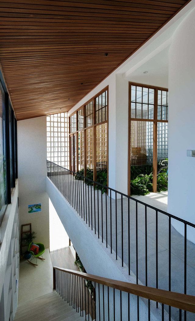 Cầu thang và sảnh dẫn lên các phòng là không gian mở, dễ kết nối mọi người. Với thiết kế đối lưu, không khí và gió luôn được tràn vào nhà dễ dàng, mang đến cho gia chủ sự thư thái, tận hưởng.