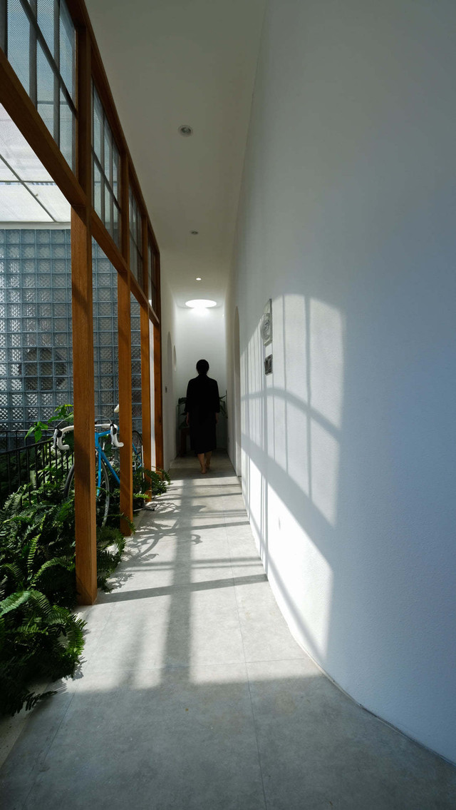 Giàn dây leo rủ xuống từ khu vực giếng trời tạo ra khung cảnh tuyệt đẹp như trong truyện cổ tích.