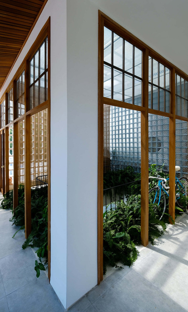 Cuộc sống hòa hợp với thiên nhiên là ý tưởng xuyên suốt của công trình nên mọi không gian đều được bố trí mảng xanh. Phòng tắm nằm sát giếng trời, trải sỏi gây ấn tượng mạnh với bất cứ ai khi bước vào tham quan công trình.
