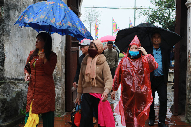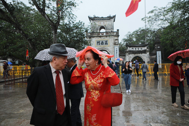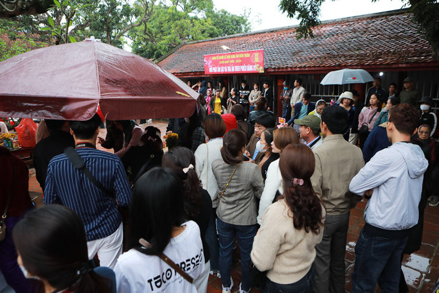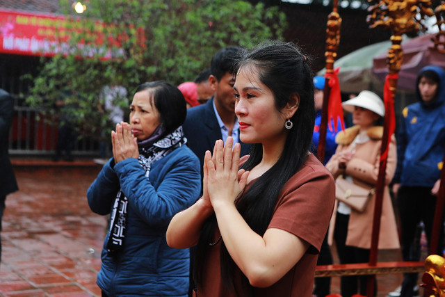 Mặc dù trời mưa, nhưng người dân, du khách thập phương nô nức đổ về để dâng hương, xin lộc, cầu sức khỏe, bình an cho gia đình và người thân.