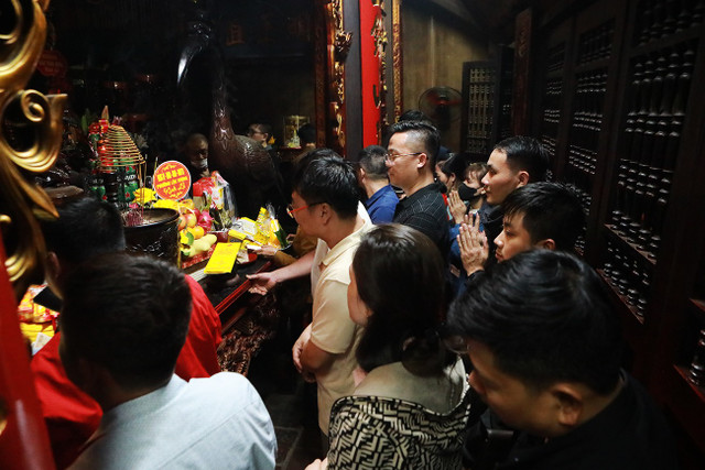 Người dân chen nhau trong đền để làm lễ.