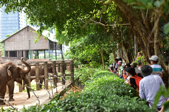 Chuồng voi, những đàn dê, cừu, hươu, nai là khu vực thu hút rất đông khách nhìn ngắm, cho thức ăn, chụp hình. Đến gần trưa, phần lớn các khu vực nuôi thú lớn đều khá đông đúc người tham quan.