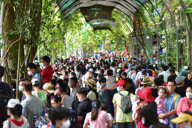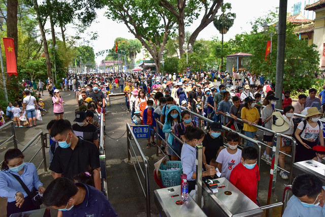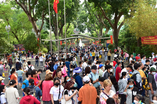 Sáng 30/4, hàng nghìn du khách, người dân TP.HCM từ các ngả đổ về 2 cổng chính của Thảo Cầm Viên Sài Gòn để tham quan, vui chơi.