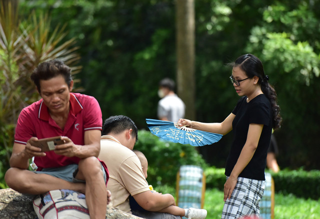 Mặc dù sở thú có rất nhiều cây xanh, bóng mát nhưng do chen chúc đông đúc, nhiều người phải tìm đến chỗ thông thoáng để nghỉ ngơi trước khi tiếp tục tham quan.