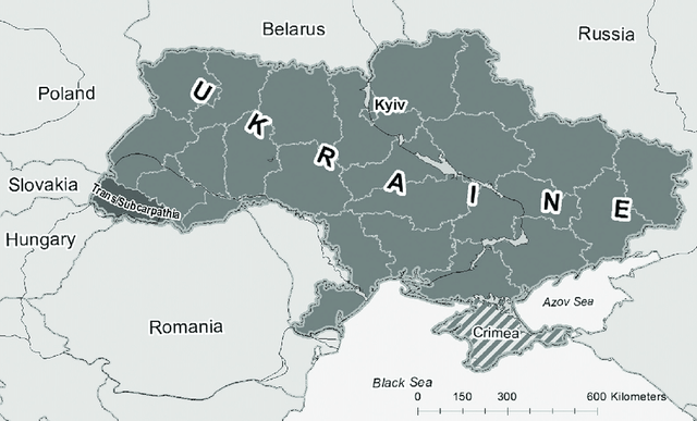 Vùng Transcarpathia trên bản đồ Ukraine (ảnh: RT)