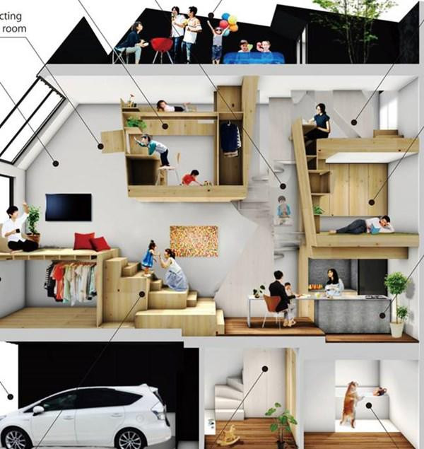 Chủ nhân căn nhà yêu cầu người thiết kế đảm bảo phòng khách rộng rãi cho gia đình 4 người, tiếp đó là các phòng riêng, phòng chứa đồ và tầng thượng.