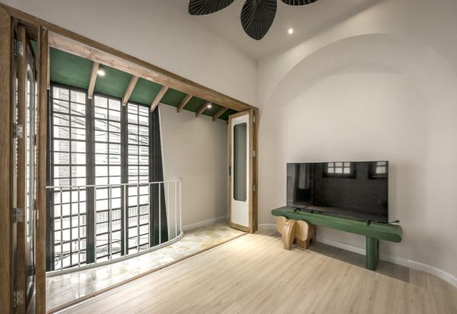 Mặc dù diện tích nhỏ nhưng nhờ có giếng trời và hệ cửa vòm nên các phòng ngủ đều rất thông thoáng. Vào ban ngày, ánh sáng ngập tràn các căn phòng mà không cần sử dụng đèn điện.