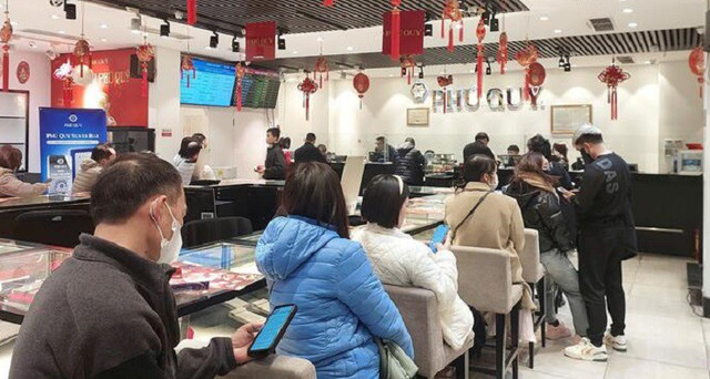 Người dân xếp hàng mua vàng khai xuân năm mới 2025.