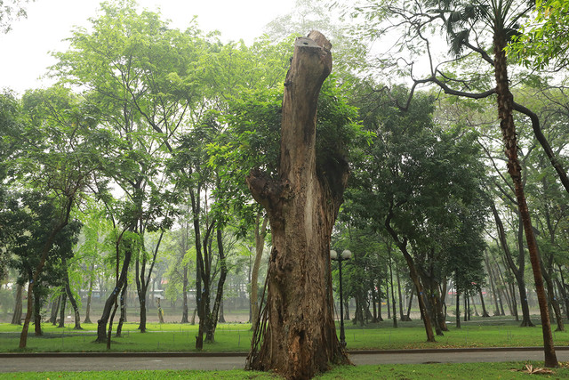 Cây cổ thụ chết rải rác trong công viên Bách Thảo.