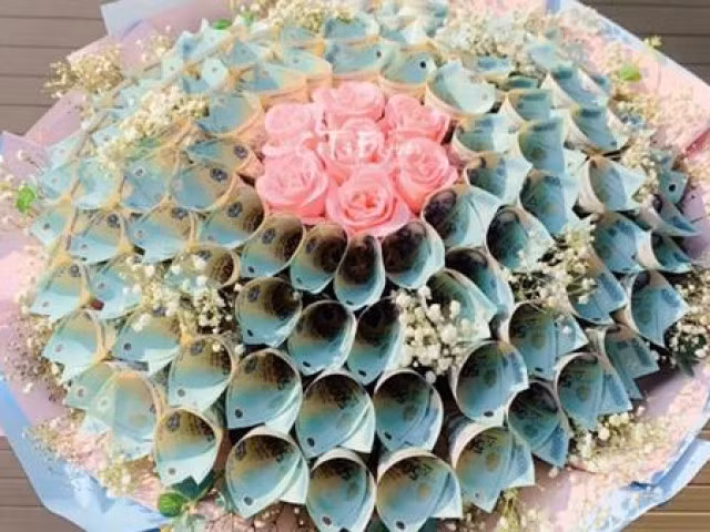 | Năm 2022, để thể hiện tình cảm với mẹ nhân ngày Quốc tế phụ nữ 8/3, một khách hàng ở Nghệ An đã đặt bó "hoa đồng tiền" với tổng trị giá 102 triệu đồng. Ảnh: Tiền phong |