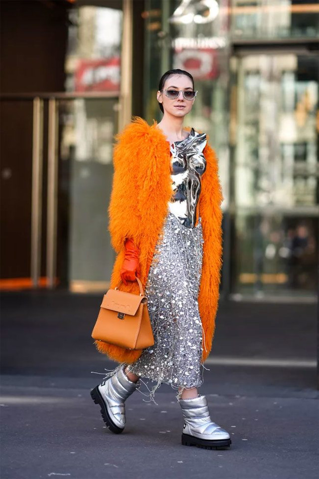 Không có quy tắc nào khi nói đến thời trang, và điều đó mở rộng đến việc kết hợp những đôi bốt đi tuyết tiện dụng với thứ gì đó đậm chất lễ hội và lấp lánh như chiếc váy midi kim tuyến.