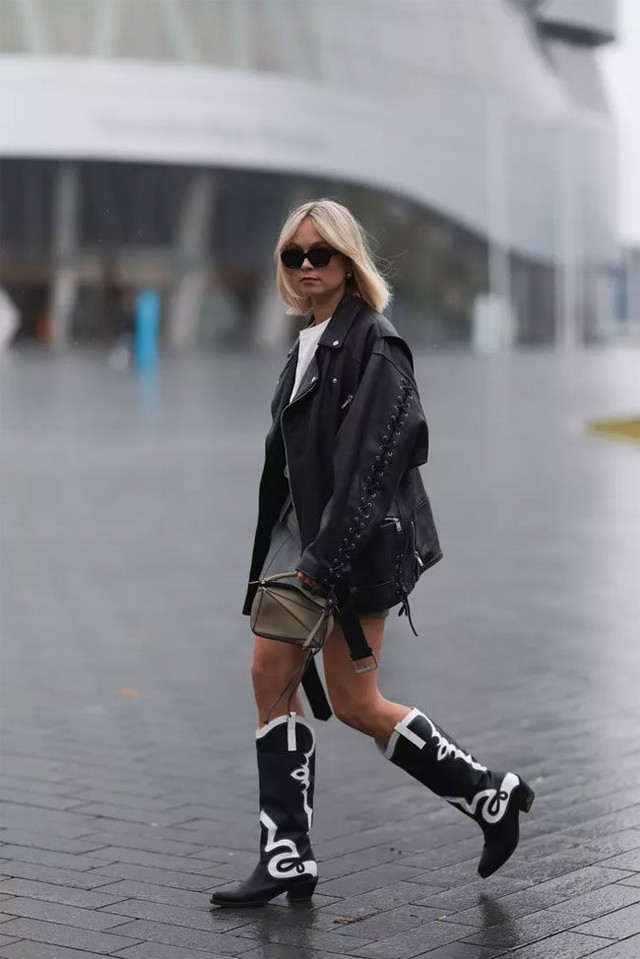 Đôi giày lấy cảm hứng từ phương Tây đang nhận được rất nhiều sự chú ý trong mùa này. Giày bốt cao bồi linh hoạt hơn nhiều so với bạn nghĩ - chúng thậm chí còn phù hợp với những chiếc váy ngắn xếp ly như thế này đây.